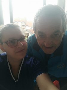 Njegovateljica Ana Lipak sa korisnikom Milivojem Santajem unutar aktivnosti Pružanje usluga zdravstvene skrbi.